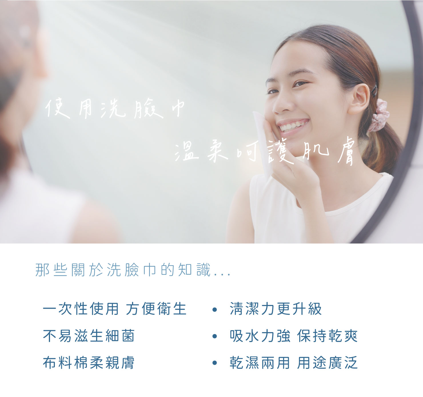 從包裝中取出洗臉巾,輕輕一擦即可進行清潔保養。