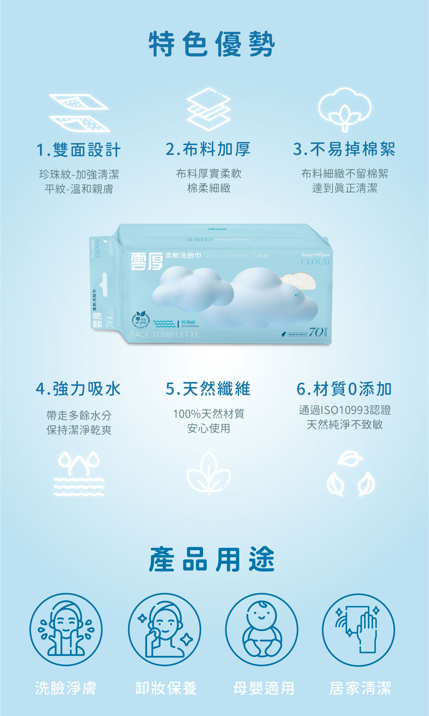 Smart Wipes CLOUD-雲厚柔軟洗臉巾-珍珠紋